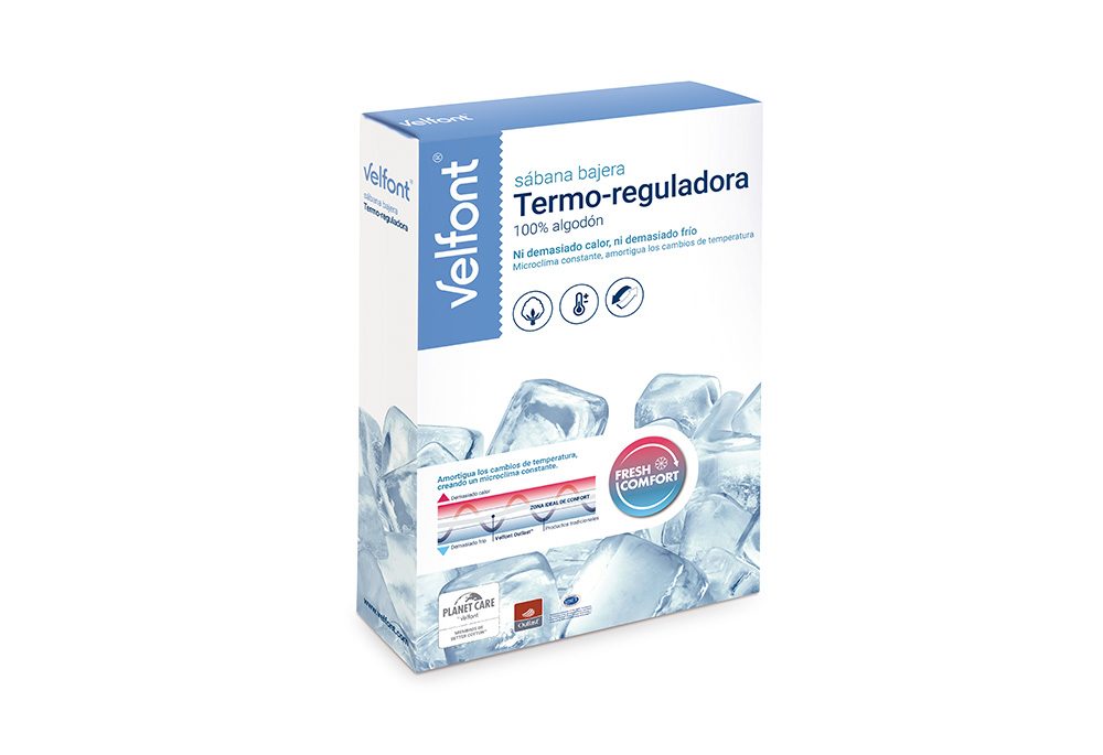 La sábana bajera Termo-reguladora de Velfont está confeccionada con tejido termo-regulador 100% algodón, que aplica la más avanzada tecnología desarrollada por la NASA con el tejido de algodón, obteniendo un producto exclusivo y único en el mercado.