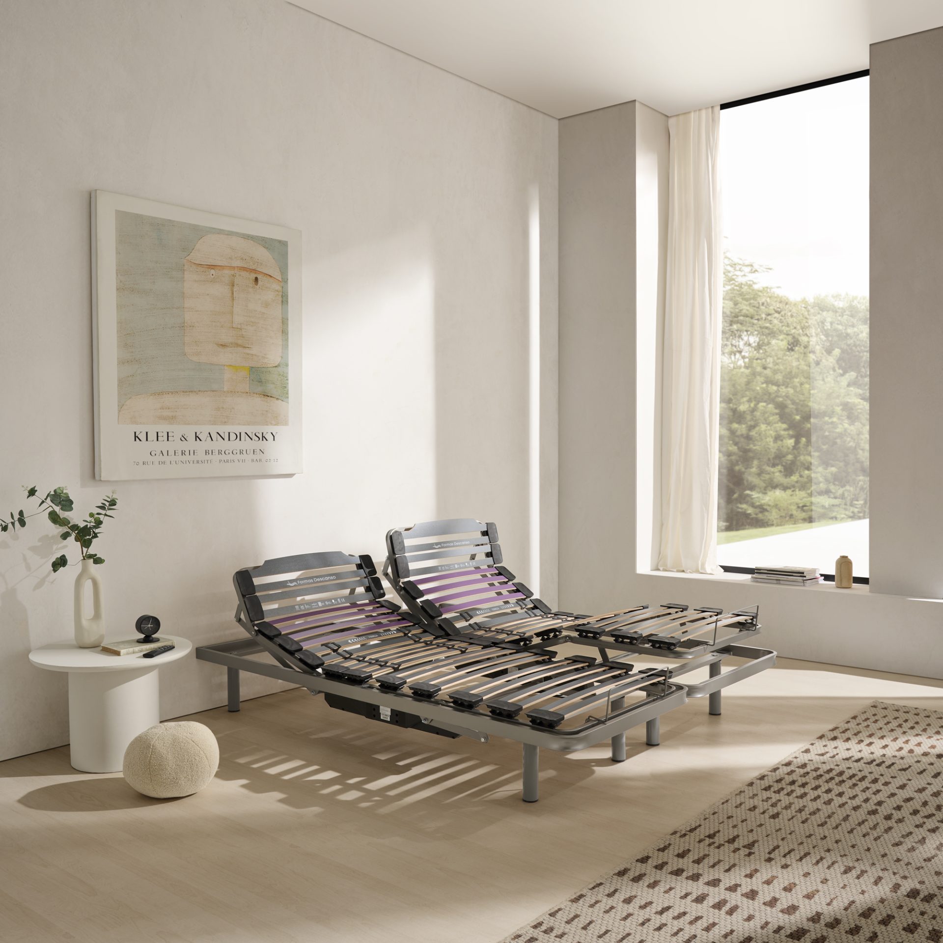Cinco planos articulados con motor doble y mando inalámbrico, lo que permite ajustar la cama con facilidad para adaptarse a distintas posiciones.