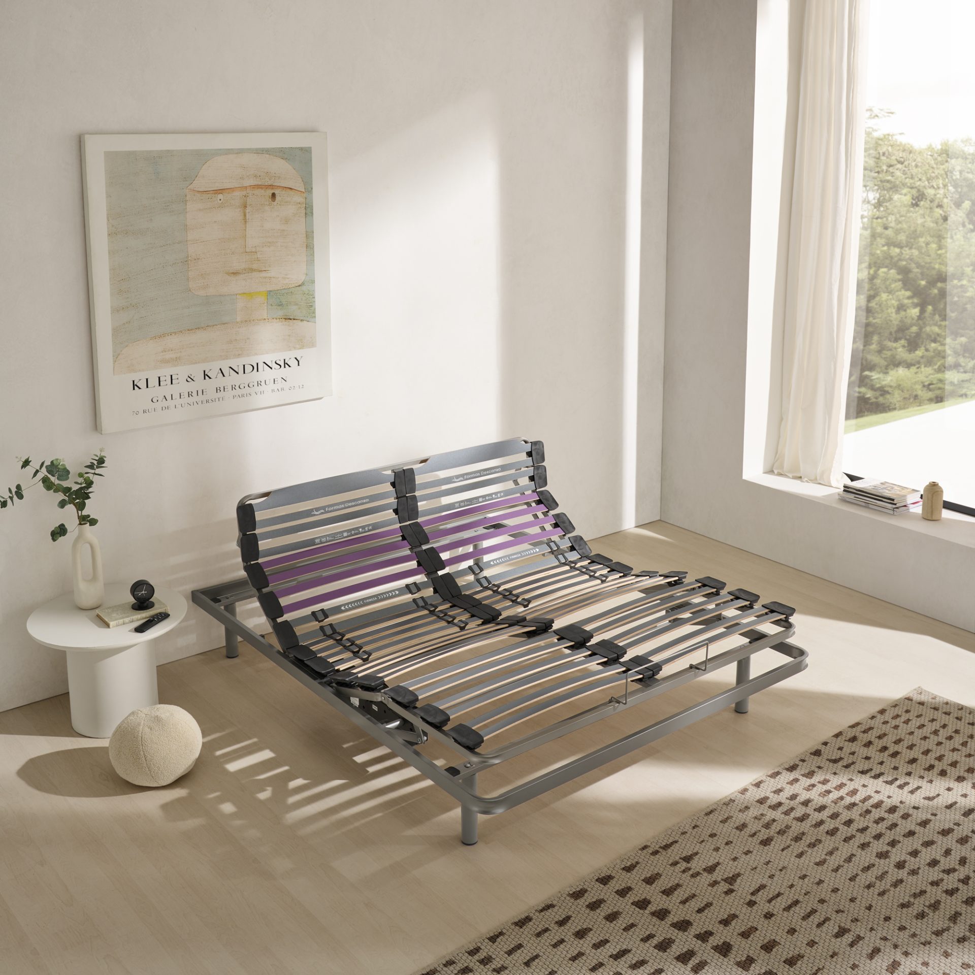 Lamas montadas sobre soportes Hytrel oscilantes dobles, que aportan elasticidad, memoria elástica y gran adaptabilidad al peso y contorno del cuerpo.